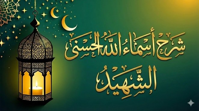 الشهيد جل جلاله هو الذي لا يغيب عن علمه شيء، وهو سبحانه المطلع على جميع الأشياء سمع جميع الأصوات خفيها وجليها ، وأبصر جميع الموجودات دقيقها وجليلها ، صغيرها وكبيرها ، أحاط علمه بكل شيء وهو سبحانه الذي شهد لعباده وعلى عباده بما عملوه .